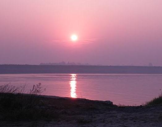 8. 早晨,你坐上旅游车,到含鄱口游玩,如果天气好,还可以看见鄱阳湖上的日出。水天相连的地平线上,由淡青变为淡黄色,渐渐又由淡黄变为绯红深红金红,紧接着金光四射,跃出一轮红艳艳的朝阳!霎时间,整个鄱阳湖显得生机勃勃,碧蓝的湖面上金波闪烁,白帆点点。再看看含鄱口左边高耸云霄的五老峰和右边陡峭的犁头尖山,啊,百里鄱阳湖一齐被收揽在这两山夹峙的豁口中了,含鄱口由此而得名。