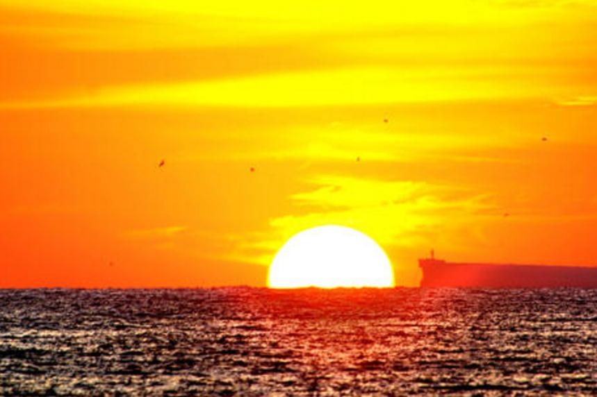 4. 三点多的闹钟把我从梦乡中唤醒,刚想按掉闹钟继续回到那个梦境里舞蹈,却突然想起今天要去看日出,只有拖拖拉拉、不情不愿地起来洗漱。刹那,太阳整个浮出海面,绚烂的阳光照亮了大地,也照亮了我的内心。