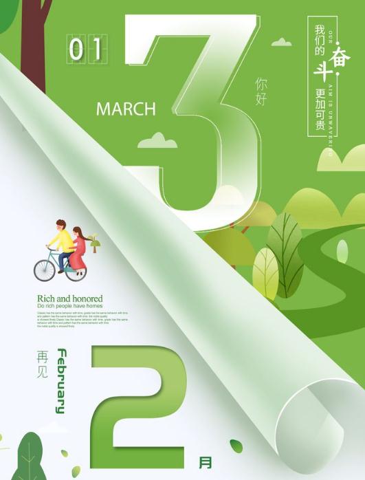 2. 二月再见,三月你好!不沉迷于幻想,不茫然于未来,走今天的路,过当下的生活。在最美的时光里,以新的自己迎接新的春天!